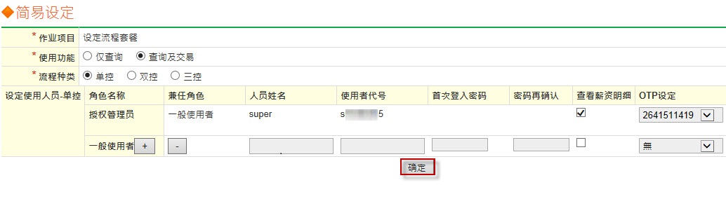 ◎范例 : 单控交易 (建档兼放行,申办行动OTP)