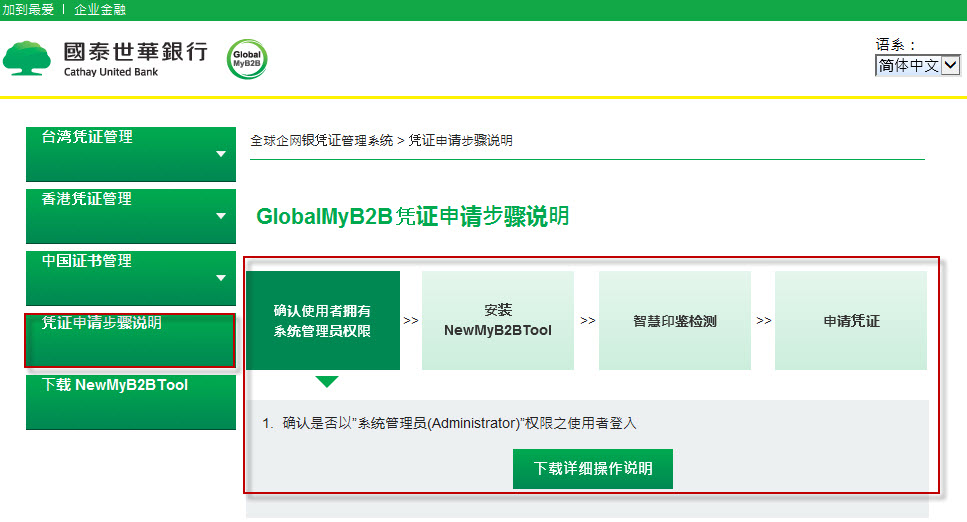 确认分行主管已将智慧印鉴开卡 安装【NewMyB2BTool】→请参阅网页上的安装流程说明
